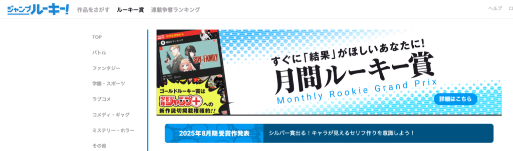 この背景の1つに、毎月開催されている新人発掘の仕組み「ジャンプルーキー!」の存在があります。ジャンプルーキー!は作家が自由に作品を投稿できるサービスであり、月末ランキング上位に入った作品はジャンプ+掲載のチャンスを得られるというシステムです。