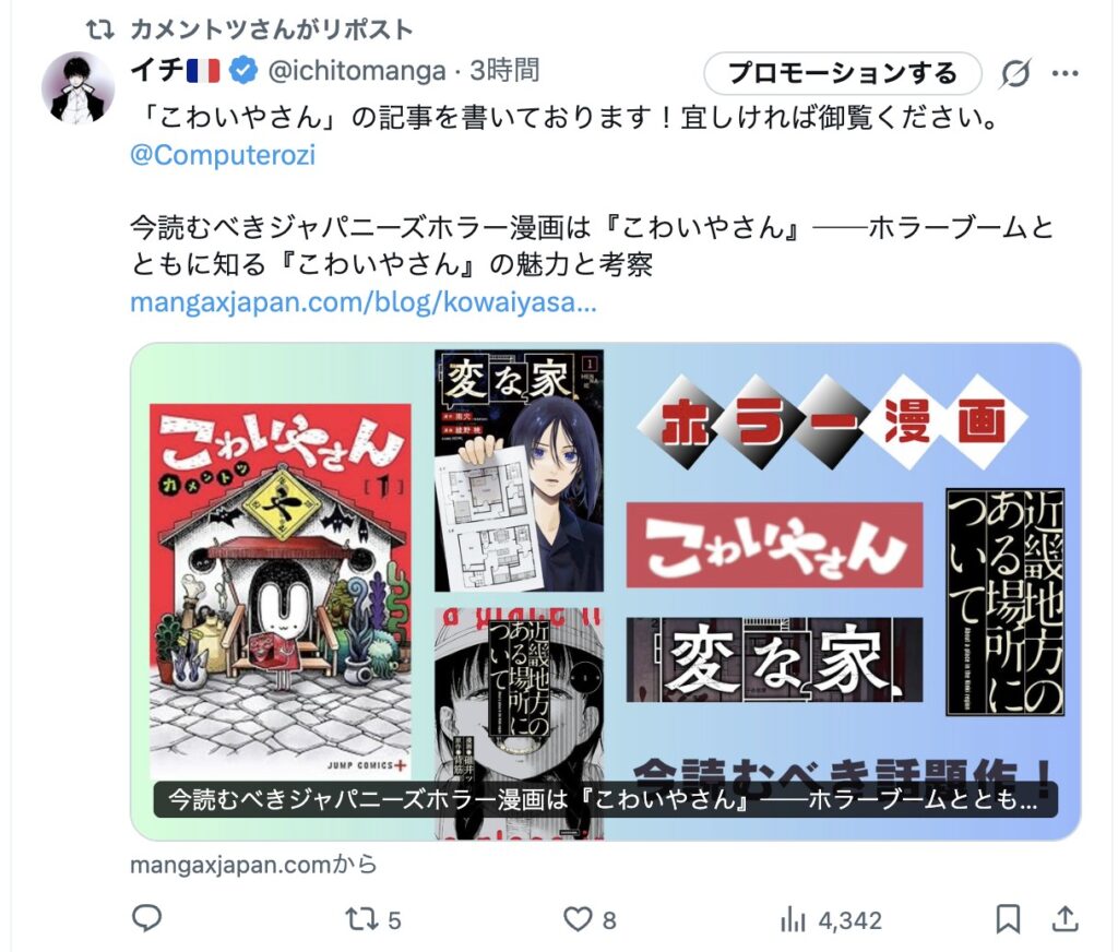 X(旧Twitter)やレビューでの漫画『こわいやさん』反響と考察
